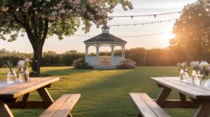 Outdoor weddings ask for lighting that withstands weather and covers larger areas. String lights stretch across tents or trees, creating inviting pathways and overhead canopies. Tiki torches add natural flickers and a tropical touch but require safety measures for open flames. Solar-powered lights offer eco-friendly, low-maintenance options along walkways or garden beds, charging during the day and glowing softly at night. Look for weatherproof materials to avoid damage from wind or rain. Power sources might involve generators or long extension cords, so you must plan placement carefully to keep cables hidden and safe. Outdoor lighting should highlight natural features without overpowering the open air. How will you balance beauty and practicality in your outdoor setup?
