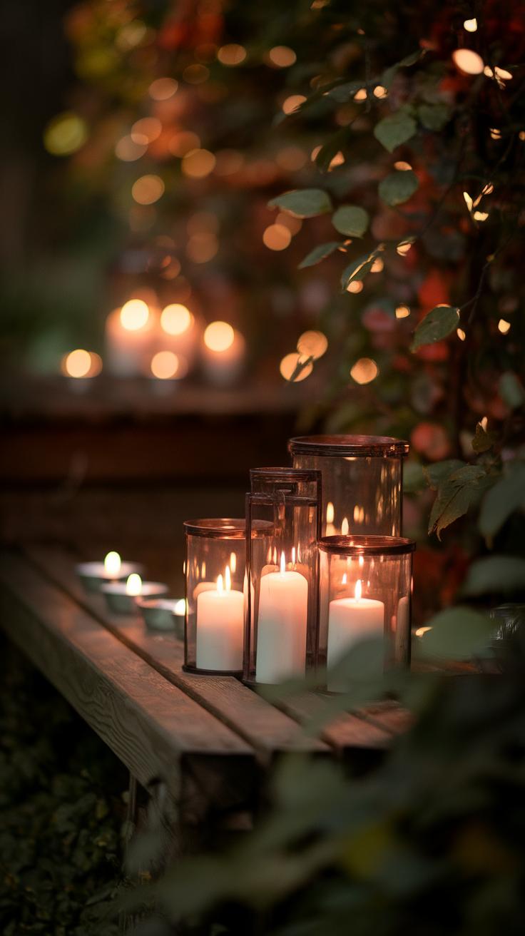 Safety matters when using open flames. Place candles inside lanterns or glass containers. Keep flammable materials away and assign someone to monitor burning candles. LED candles can offer a safe alternative while keeping the cozy look.
