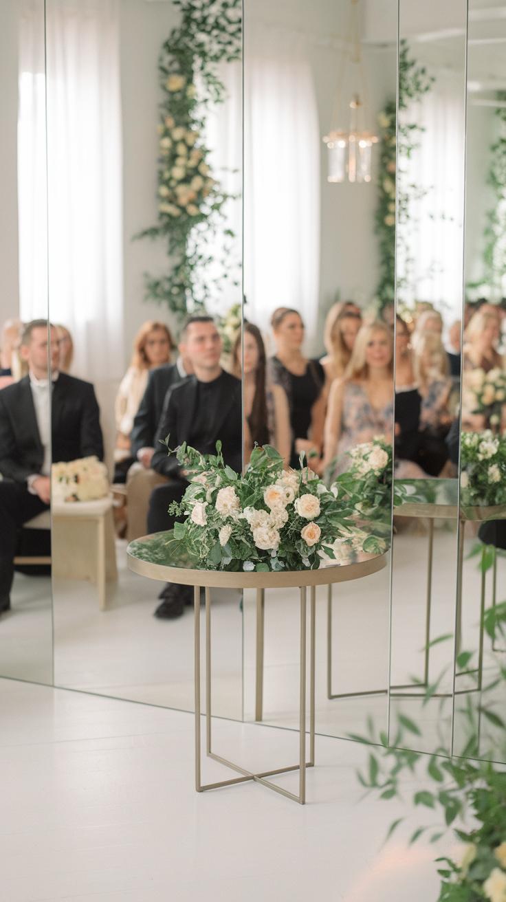 Mirrors should feel like part of the decor, not an overpowering element. When adding mirrors, consider the style and color scheme of your venue. Ornate frames may compete with delicate floral decor, while simple frames can blend seamlessly with minimalist settings.