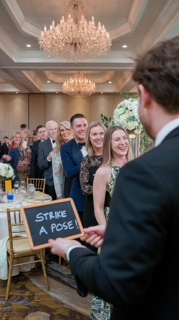 Invite guests to take group photos with themed challenges to spark interaction. For example, challenge groups to create the silliest face or strike a dramatic pose. These games motivate even shy guests to participate.