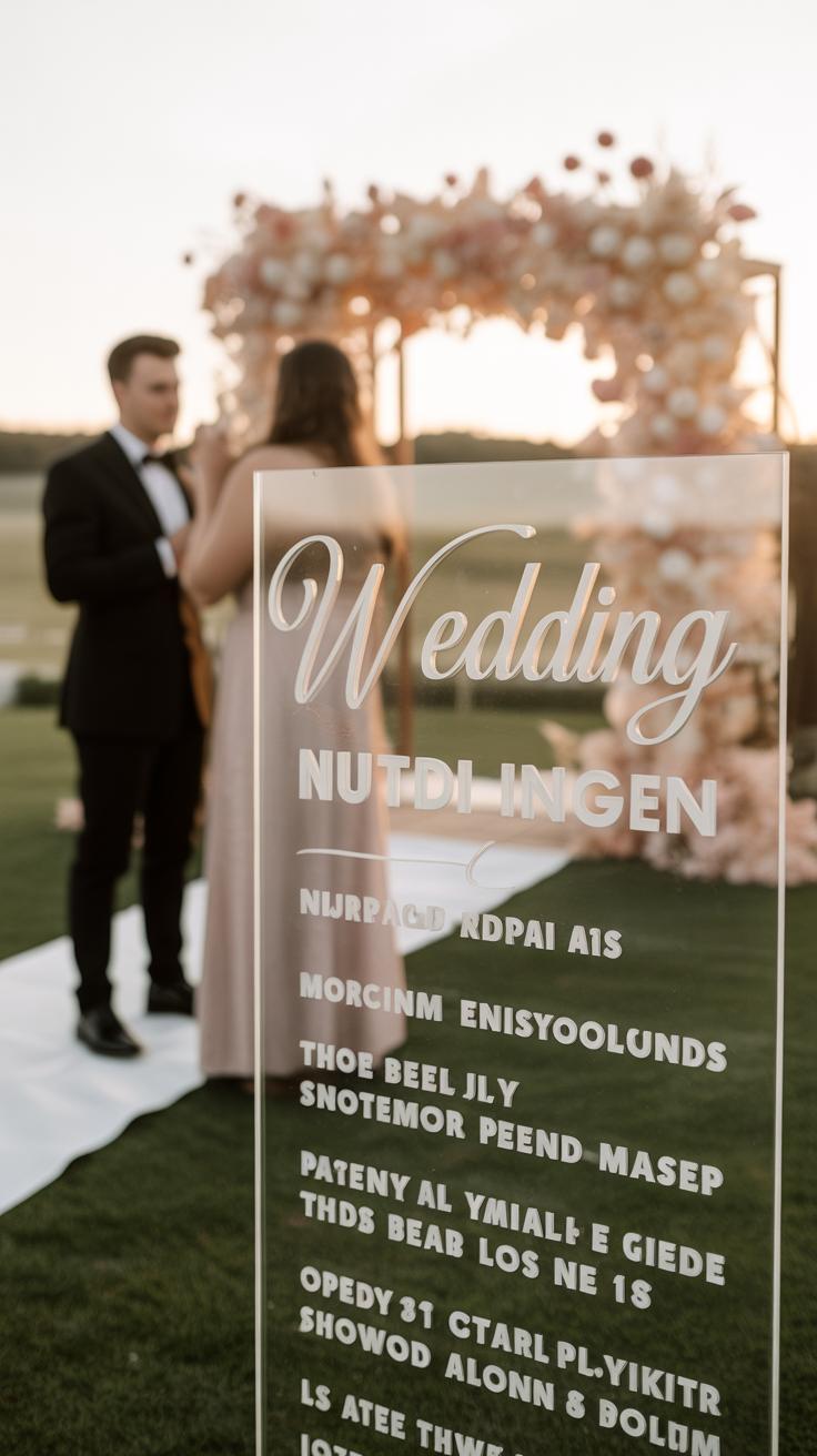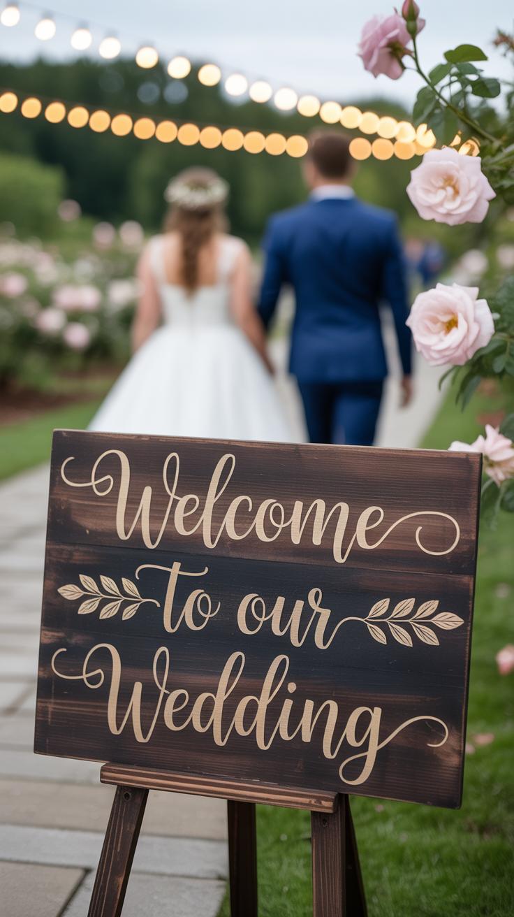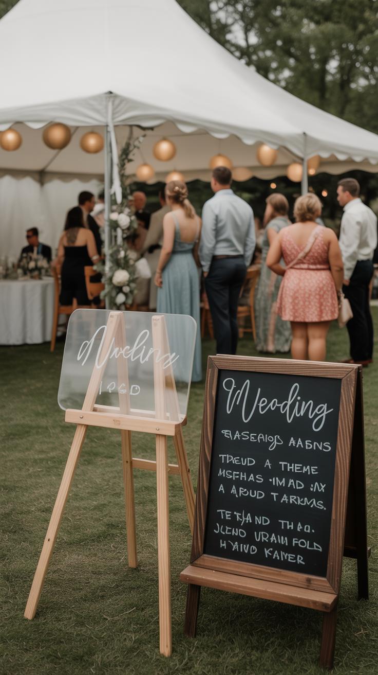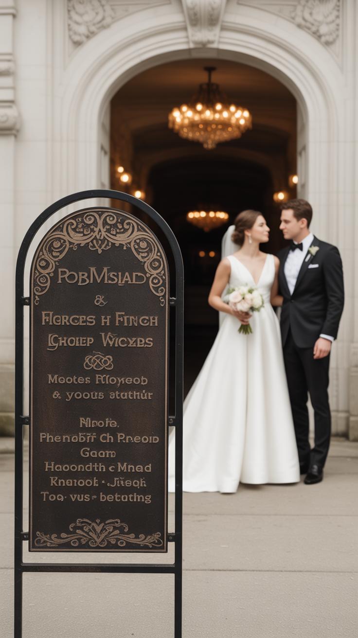 I once attended a wedding where a single sign included a note about quiet zones, a thank you message, and directions to the bar. It felt thoughtful and useful rather than overwhelming.