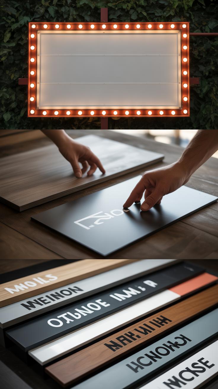 Think about how the material will hold up too. Chalkboards can smudge if it rains or gets humid, while wood can warp, so you may want to consider the environment carefully.