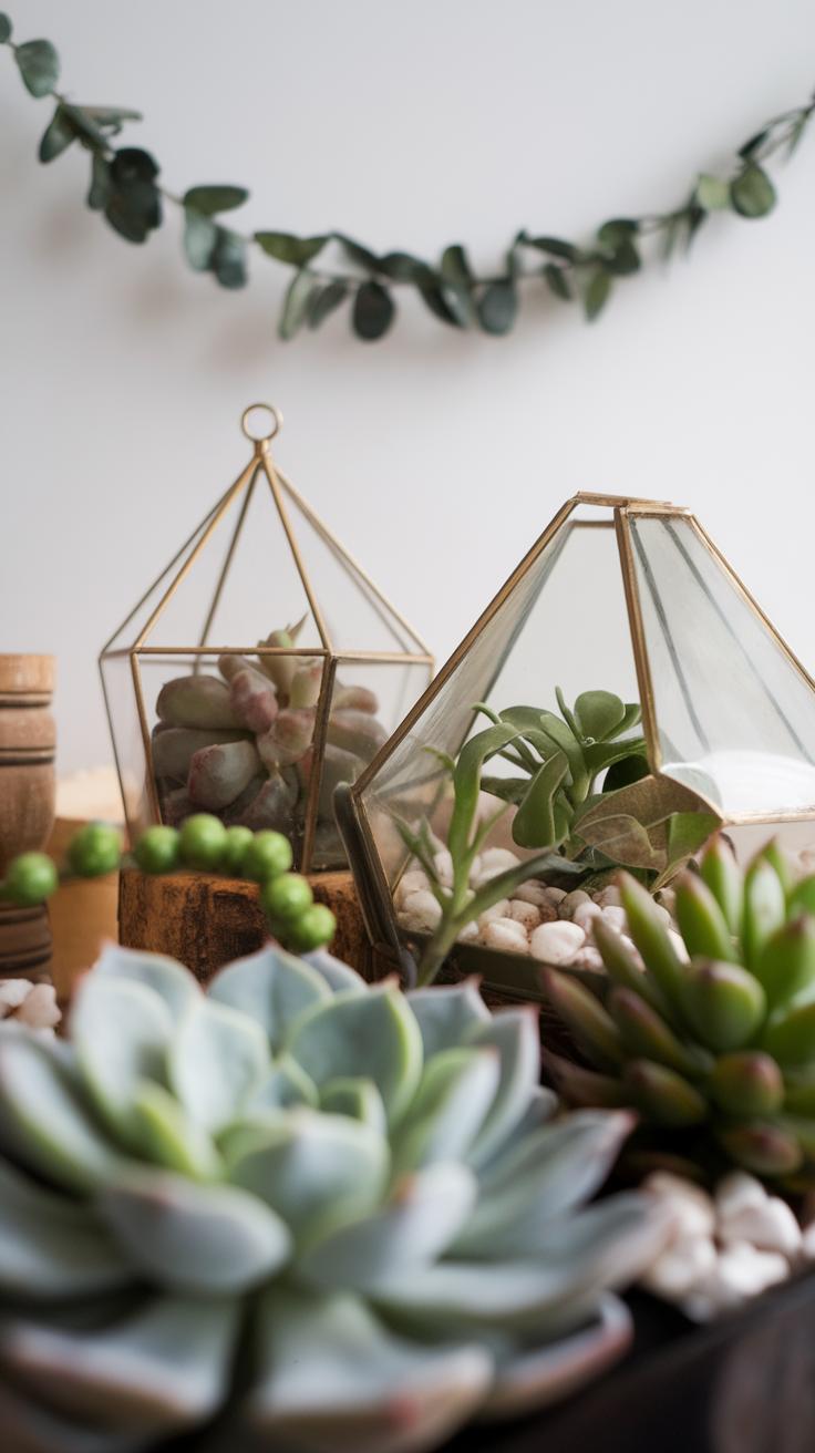Incorporating metal and glass brings a contemporary edge to wedding centerpieces. Metal candle holders in brushed gold, copper, or black iron introduce texture and shine that catch the eye. Geometric glass terrariums filled with air plants, succulents, or small flowers offer a modern twist that differs from traditional floral arrangements. These pieces provide structure and create a layered look on your tables. How will you combine cool metallic tones with transparent glass for a balanced effect? You could place a metal frame around a glass container or stack glass cubes with metal accents for height. These elements suit both elegant and casual weddings, giving your tables an updated and sophisticated feel.