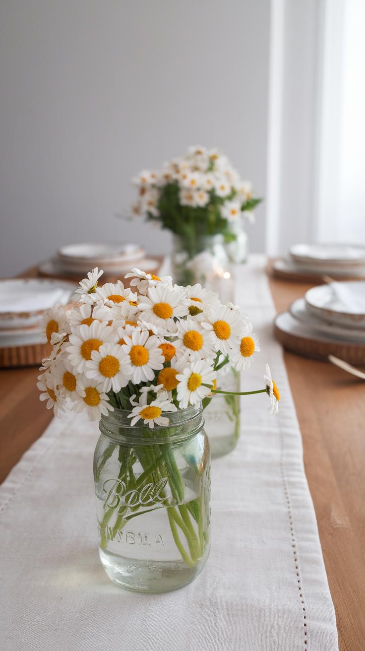 Use simple containers such as mason jars, tin cans painted to match your theme, or recycled glass bottles. These vessels can highlight inexpensive flowers while keeping your tables stylish.