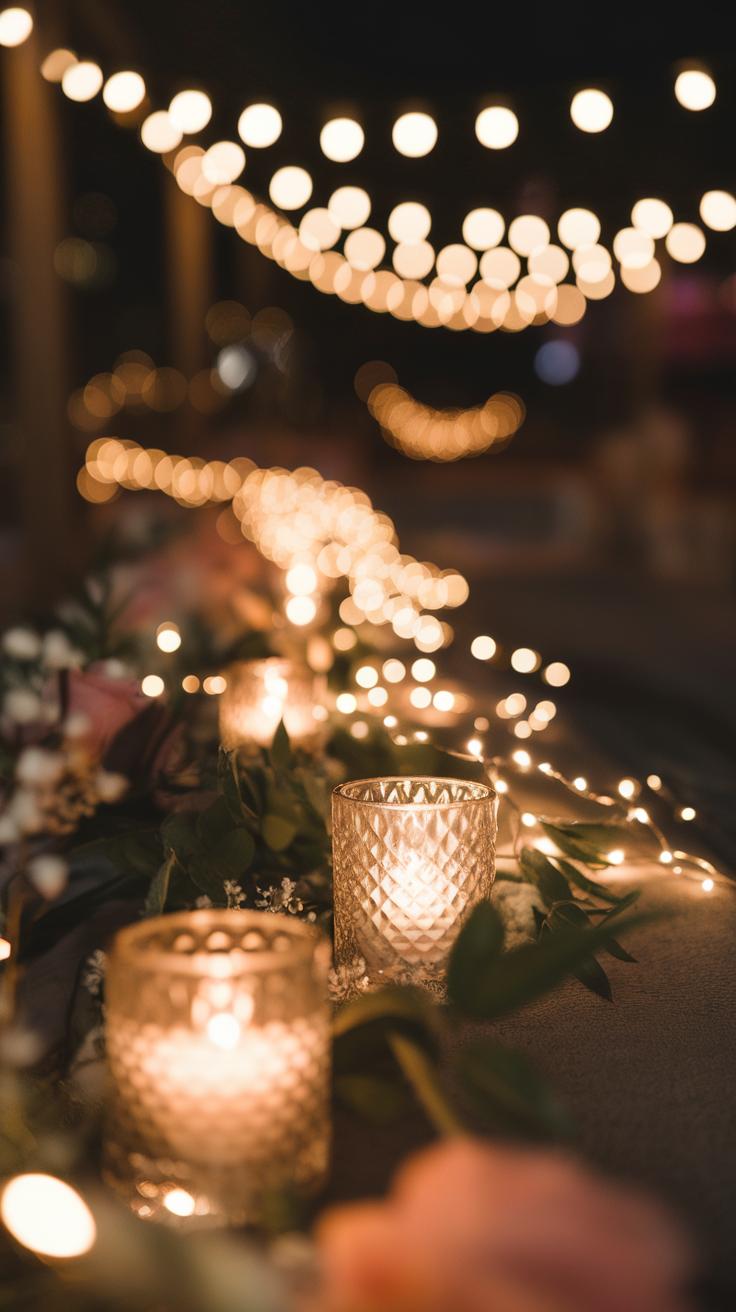 What mood do you want to create? Fairy lights offer a twinkling charm, while lanterns provide a cozy, grounded glow. Combining these elements can draw your guests into a magical setting that feels both intimate and beautiful.