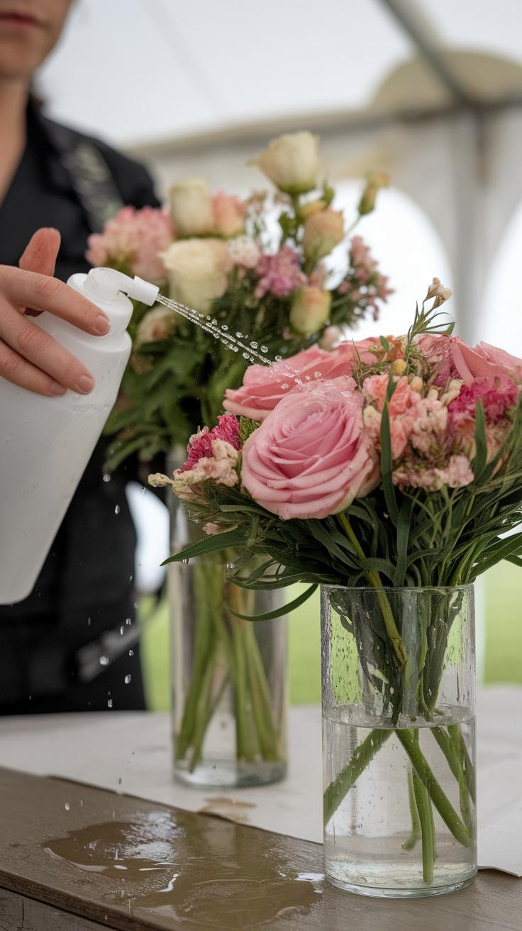 Hydrate flowers for several hours before arranging them. This ensures each bloom draws enough moisture to stay firm and vibrant. Keep bouquets and centerpieces in a cool, dark place while you prepare other decor elements.